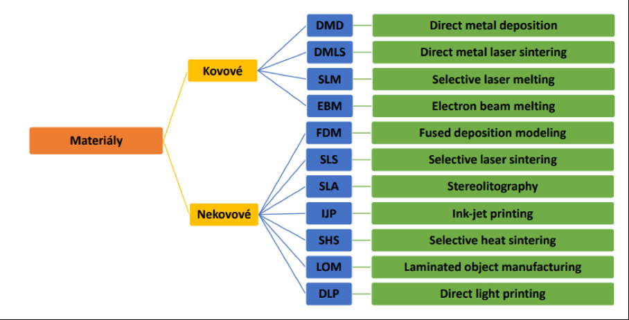 Ve světě 3D tisku je dnes přes 20 různých způsobů, jak dosáhnout výsledného 3D výrobku. Na obrázku níže si můžete prohlédnout základní rozdělení 3D tiskáren. Technologie FDM byla nastíněna výše.