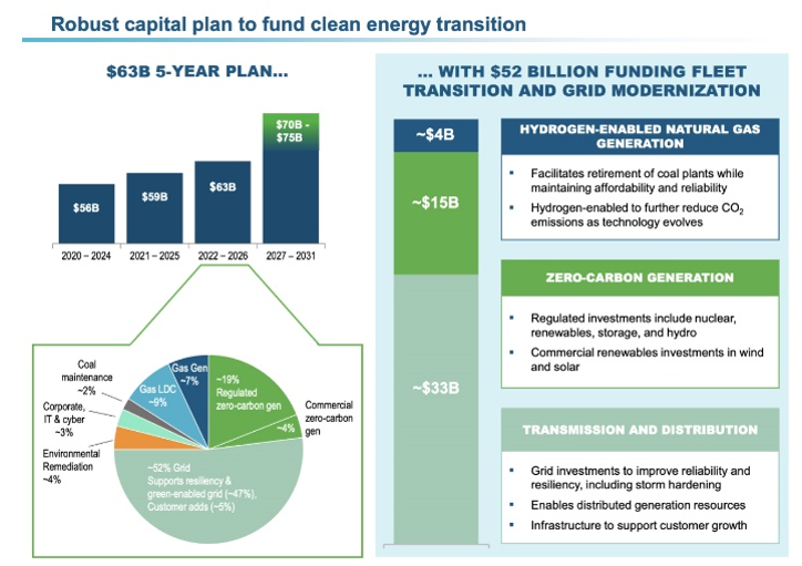 V letech 2022 až 2026 má společnost vynaložit 63 mld. USD na modernizaci své sítě a snahu o dosažení uhlíkové nuly prostřednictvím investic do jaderné energie, obnovitelných zdrojů, skladování a vodních elektráren.