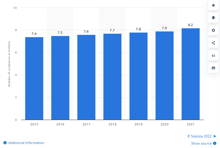 Při tržní kapitalizaci 75 mld. USD činí roční tržby 25,5 mld. USD a čistý zisk 3,7 mld. USD.
