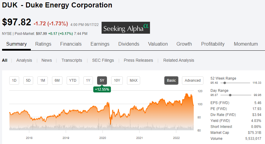 | Název společnosti (ticker) | Duke Energy (DUK) |