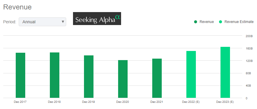 Při tržní kapitalizaci 46,5 mld. USD a ročních tržbách 130 mld. USD činí čistý zisk společnosti 10 mld. USD. Hodnotové ukazatele P/E na 5,3 a forward P/E na 4,8 signalizují podhodnocené akcie. Společnost je zatížena vysokým dluhem ve výši 90 mld. USD po odečtení hotovosti.