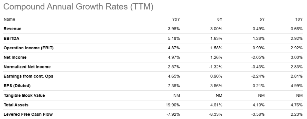 - Vývoj: Hodnoty byly stabilní mezi 2,38 (2018) a 4,63 (2020), přičemž současná hodnota TTM je 3,92.