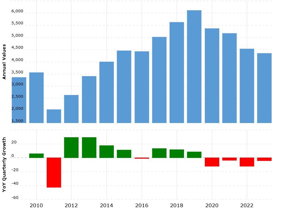 - Vývoj: Hodnoty se pohybovaly od 5,30 (2018) do 8,63 (2023), přičemž TTM hodnota je 8,48.