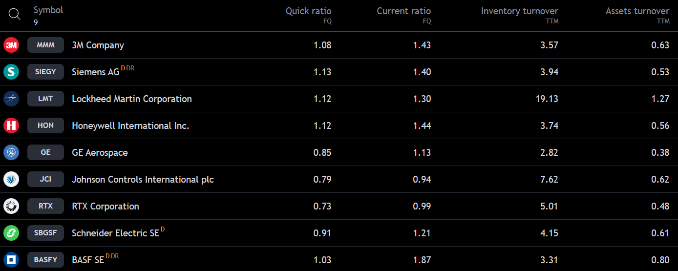 - Srovnání: Honeywell má P/B okolo průměru mezi konkurenty. Nižší P/B má např. RTX Corporation (2,59) či BASF (1,05) a vyšší např. Lockheed Martin (16,99) či 3M Company (15,23).