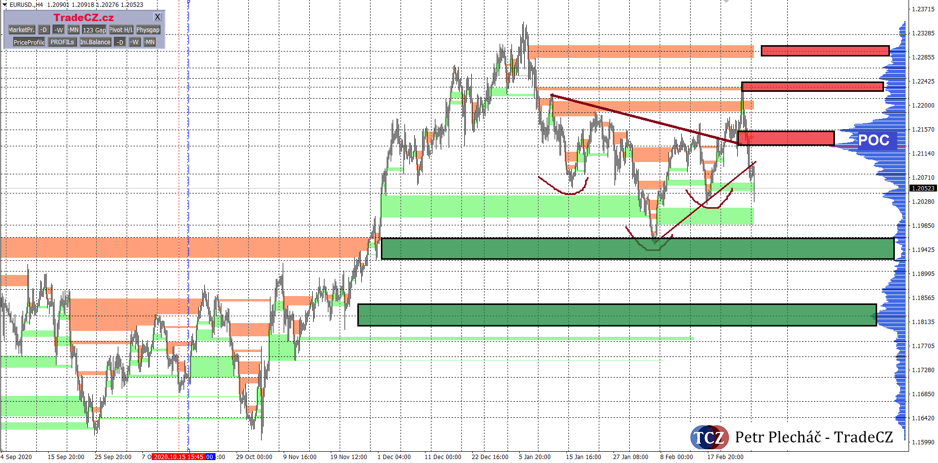 Na měnovém páru EURUSD se projevuje nervozita ohledně růstu výnosů amerických vládních dluhopisů poklesem tohoto trhu, tedy posílením amerického dolaru vůči ostatním měnám, euru nevyjímaje. O dalším cenovém vývoji na forex páru EURUSD bude rozhodovat především americký dolar a nálada investorů po oznámení blížícího se stimulačního balíčku. Sázky proti dolaru jsou stále vysoké a velcí spekulanti jsou již delší dobu tzv. net short. Z pohledu RRR mají bezesporu větší smysl nákupy dolaru, a tedy shorty na měnovém páru EURUSD, nicméně trend je zde jasně rostoucí a jak jistě víme – trend is your friend.