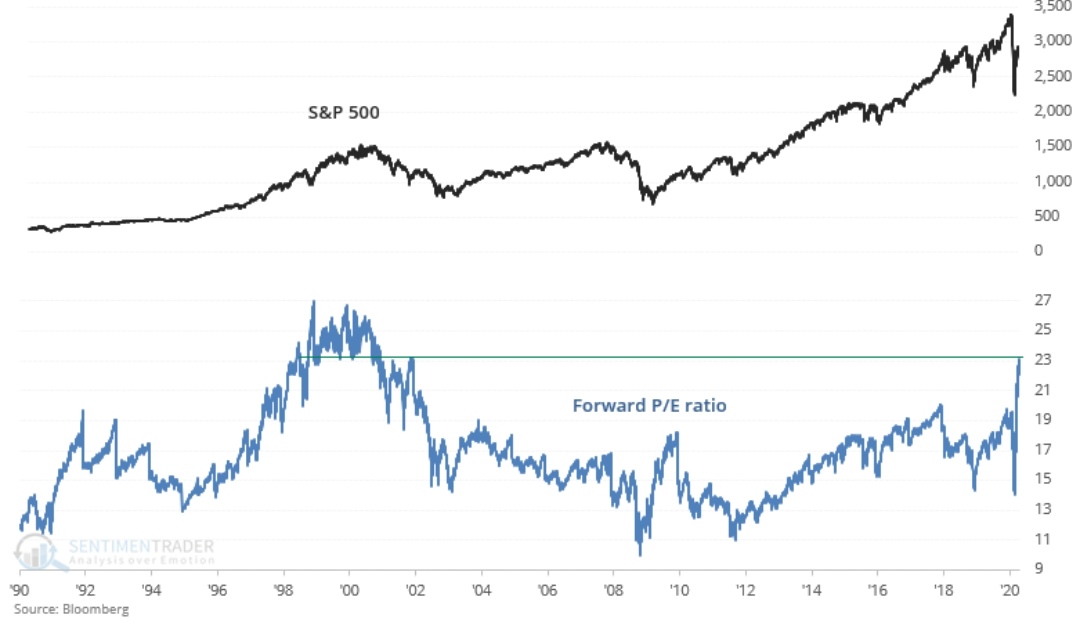Z hlediska očekávaného výnosu jsou investoři nyní ochotni zaplatit za akcie nemalou sumu. Podobnou situaci jsme již zažili a to při tzv. dot com bublině.