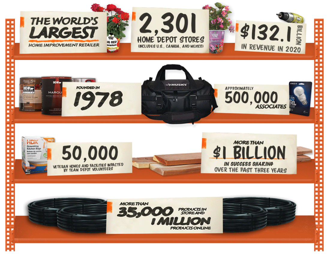 Společnost Home Depot je největším maloobchodním prodejcem domácích potřeb ve Spojených státech, který dodává nářadí, stavební výrobky a služby nejenom domácím kutilům.