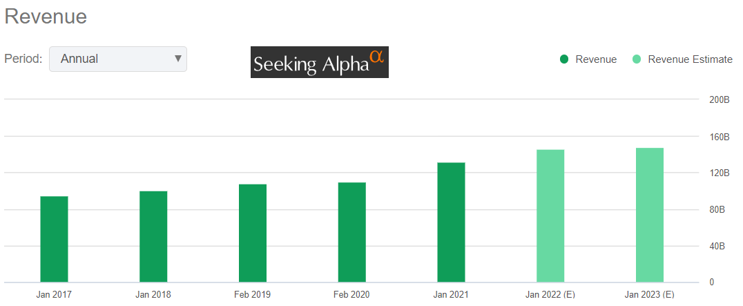 Tržby společnosti rok od roku rostou, přičemž v roce 2021 (účetně) dosáhly až na hodnotu 132 miliard USD. V dalším roce by měl růst tržeb atakovat 10 %, následně se očekává ustálení růstu kolem 3 % ročně.