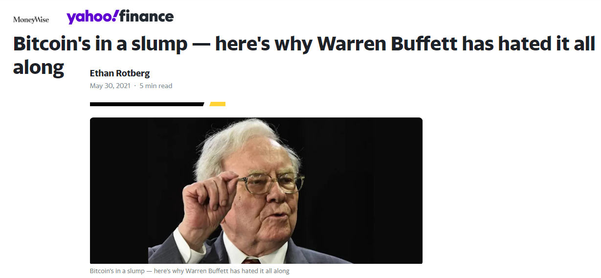 V článku na yahoo!finance z května 2021 se dozvíme, že je podle něj Bitcoin „pravděpodobně krysí jed na druhou, ale na rozdíl od zájmu civilizace“. Těžkopádný překlad, ale jistá averze vůči Bitcoinu je, domnívám se, patrná.