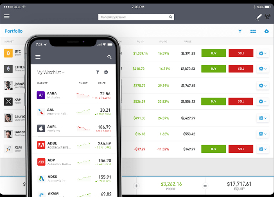 Obchodní platformaeToro webová a mobilní app