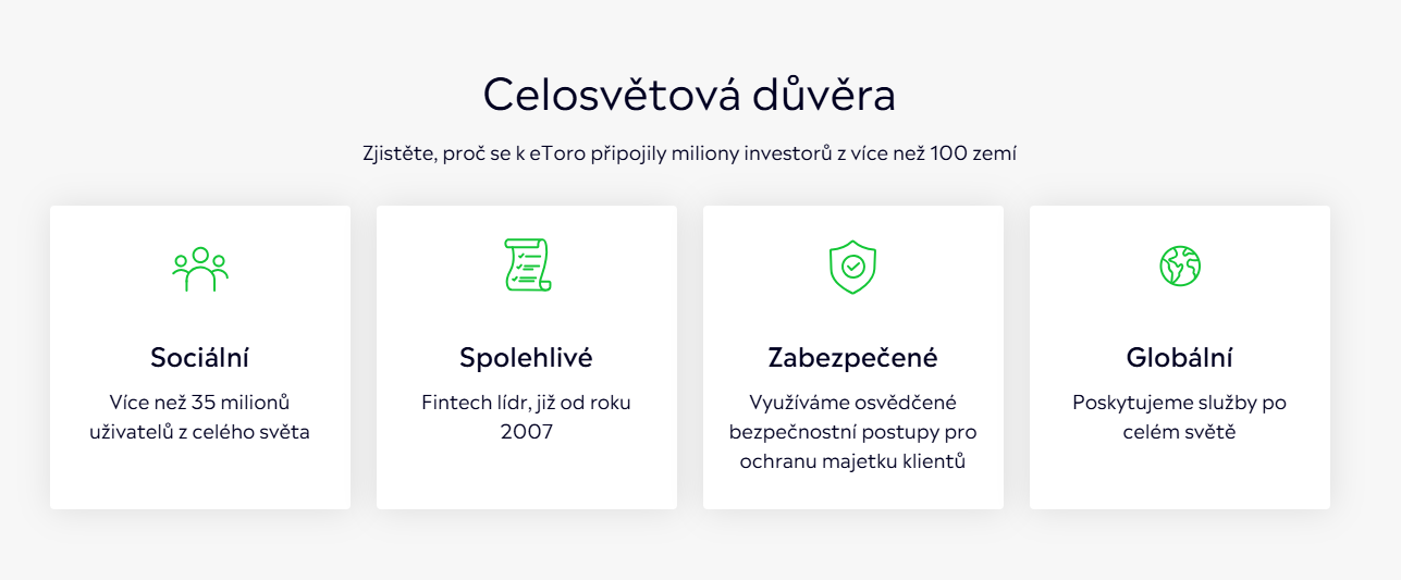 Společnost je regulována, služby eToro využívají miliony lidí po celém světě a o důvěryhodnosti není pochyb.