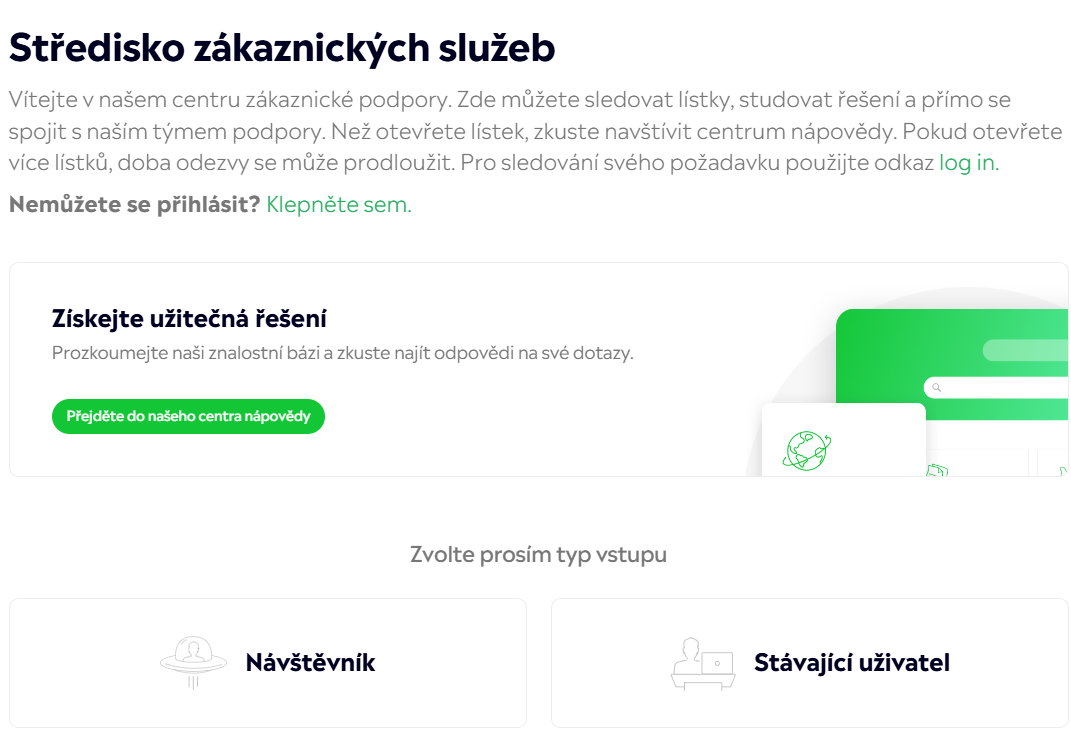 Pokud není možné využít živý chat, můžete vždy odeslat žádost o podporu prostřednictvím online formuláře na webu eToro. Na dotazy je odpovězeno obvykle do 48 hodin. Pokud se nemůžete přihlásit do svého účtu, máte možnost odeslat dotaz jako návštěvník.
