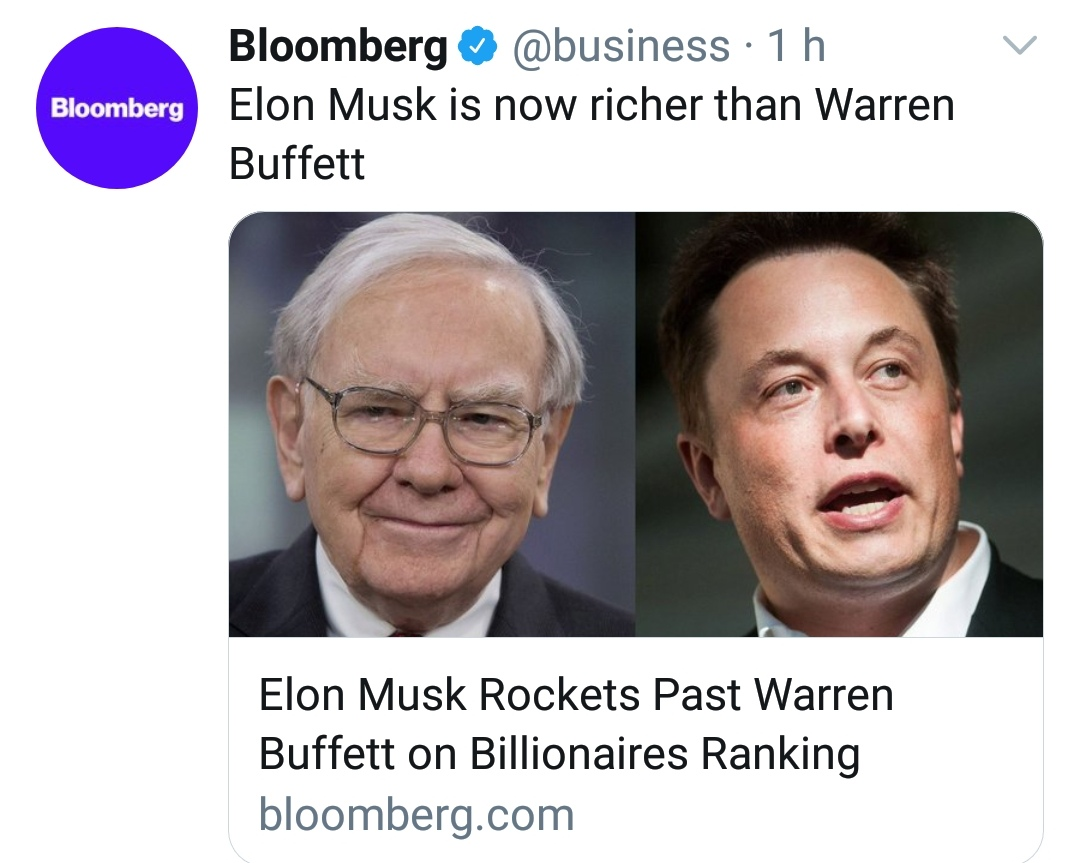 Elon Musk se stal bohatším mužem, než je Warren Buffett. Není se čemu divit při pohledu na jeho společnost Tesla.