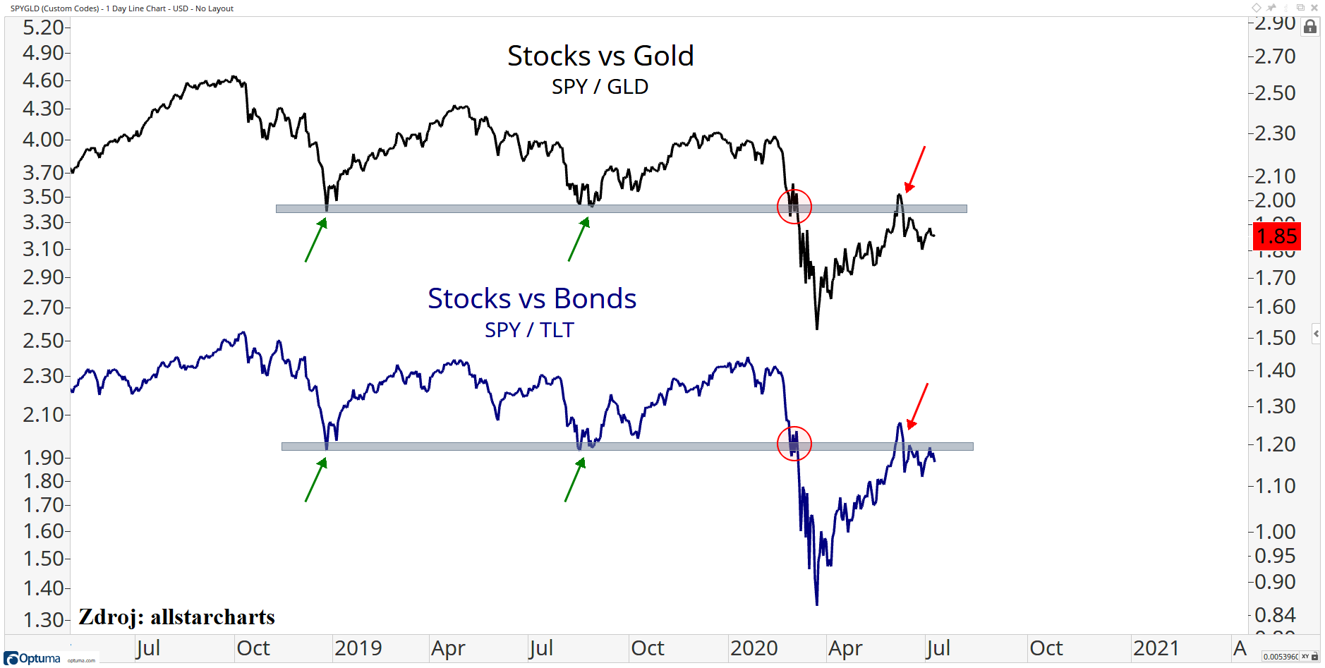 Poměrové ukazatele (akcie vs. zlato a dluhopisy) jsou před Earnings na resistenci.