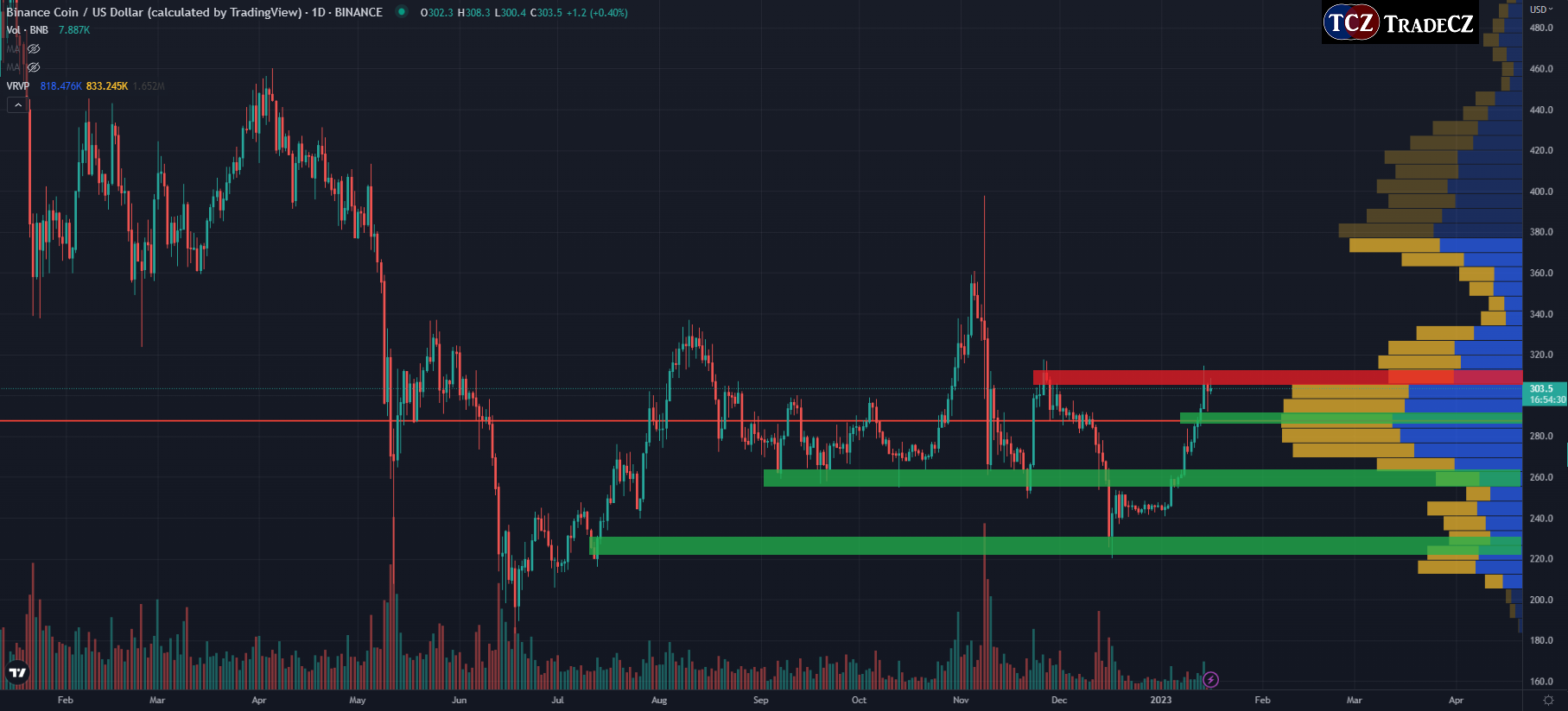 Nativní token burzy Binance, zvaný Binance Coin, slaví návrat do Value Area mezi 260-330 USD. V současné chvíli se pohybuje u horní hrany oblasti hodnoty, přičemž další pohyb do strany je pravděpodobný.