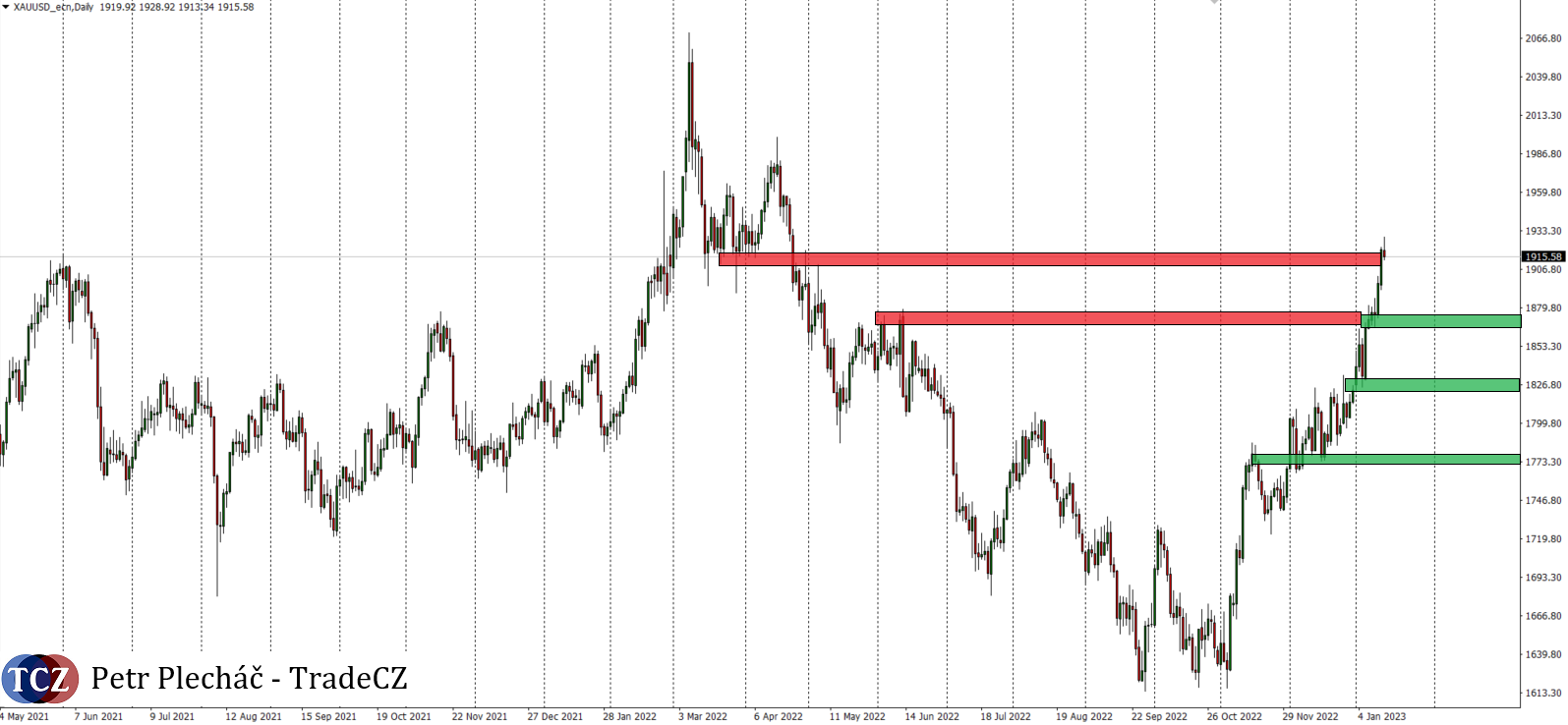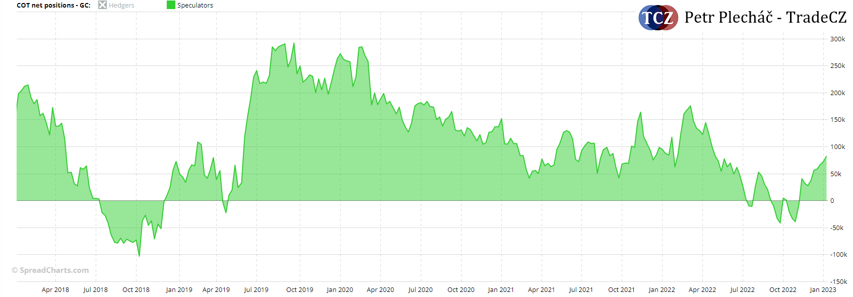 Trh překonal Value Area mezi 1 800-1 870 USD/unci a zakončil v posledním týdnu na silné S/R úrovni. Velcí spekulanti dál zvyšují své longy oproti shortům a jsou tzv. net long.