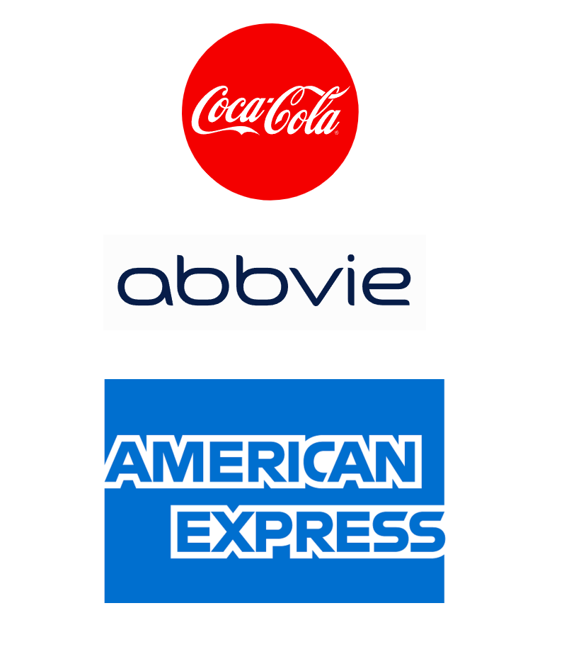 „Blue chip akciemi“ jsou: Coca-Cola (KO), American Express (AXP) a AbbVie (ABBV).