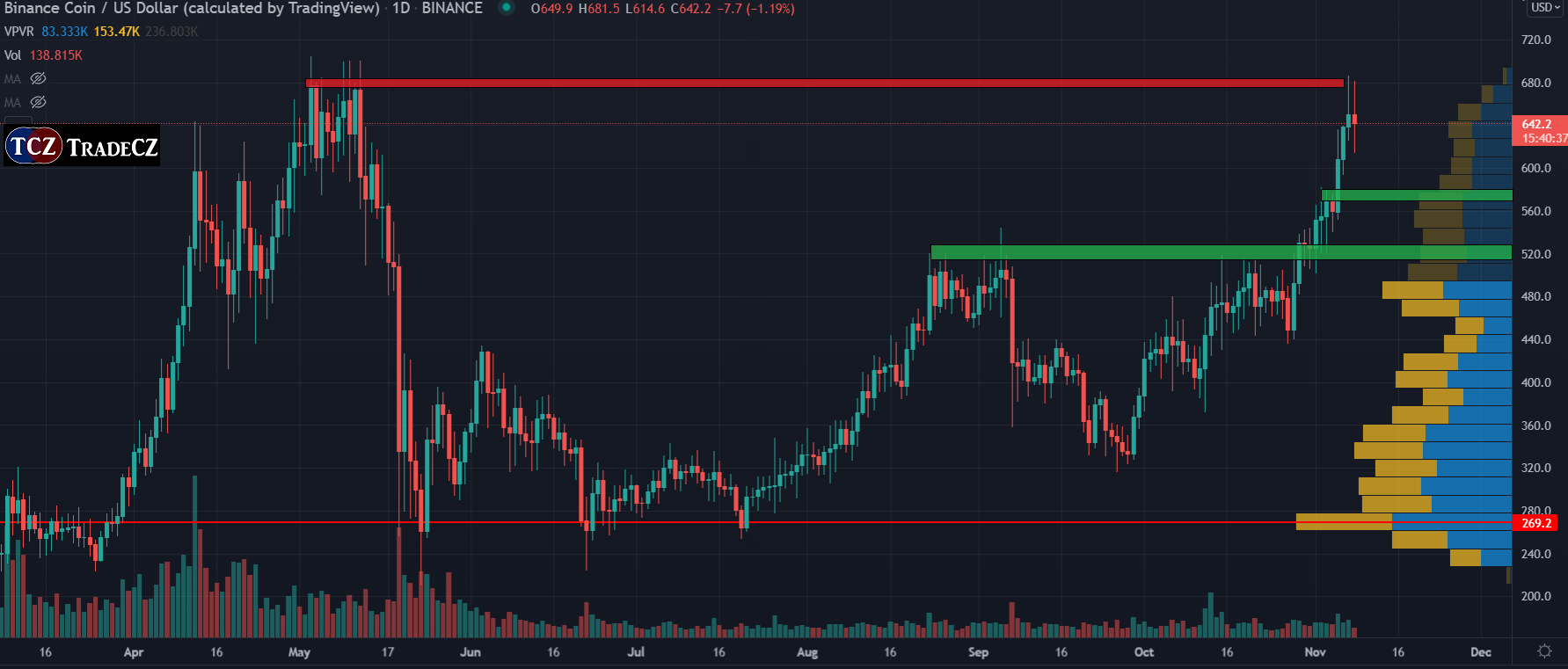 Nativní token burzy Binance atakuje ATH! Binance Coin se momentálně obchoduje kolem 640 USD, když za poslední čtyři dny přidal bezmála 22 %.