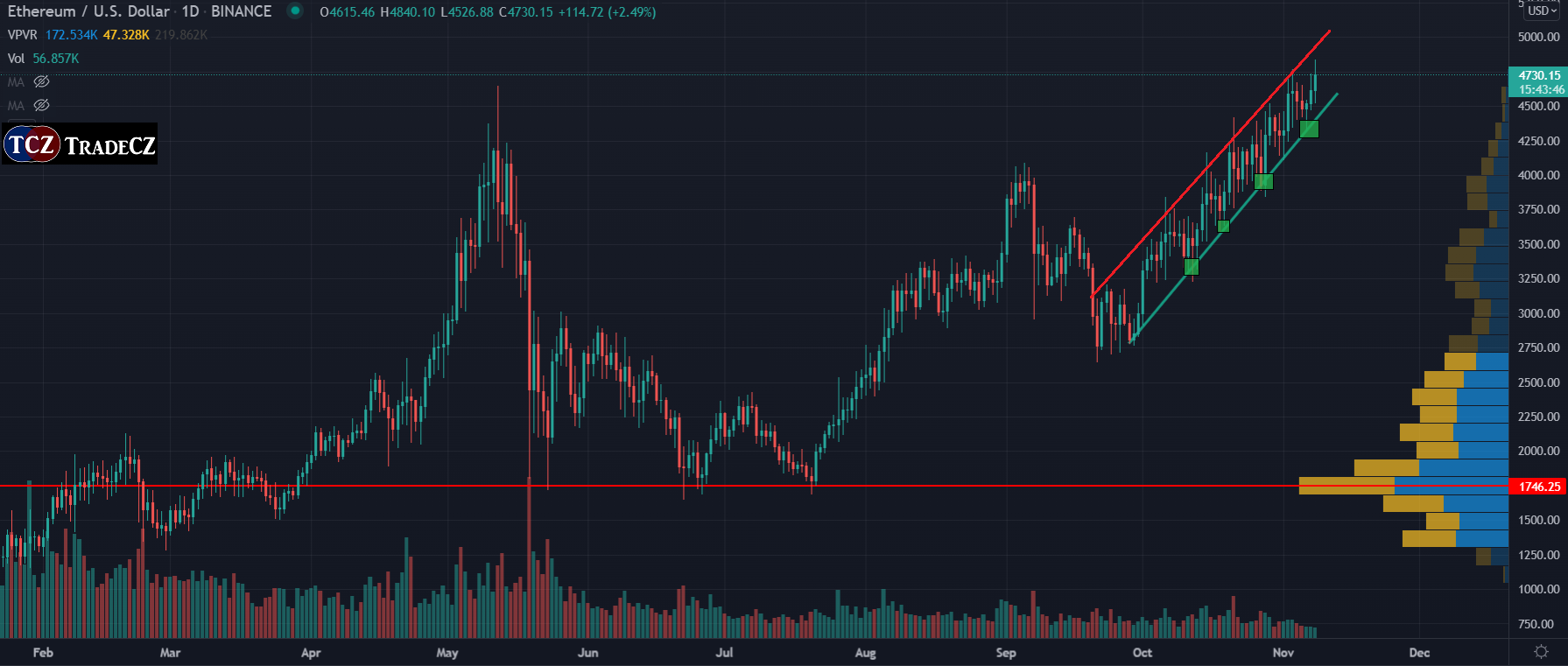 V případě breaku ATH se může spustit nová vlna nákupů, podpořena i tím, že na grafu nebude jasně viditelná resistance (nad ATH trh ještě nebyl 🙂 ).