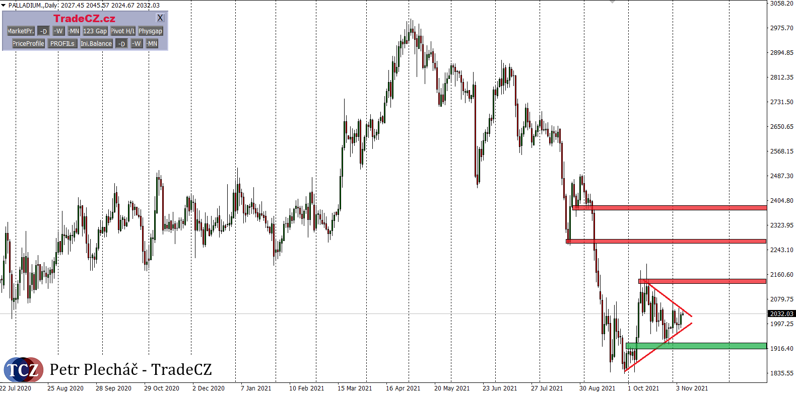 Palladium se v současné chvíli prodává s 33% slevou ze svého ATH, které stanovilo v květnu tohoto roku. Palladium je velmi důležitý drahý/průmyslový kov, který byl před rokem velmi oblíbený u investorů i spekulantů, především díky jeho spojitosti s přechodem automobilového průmyslu na EV.