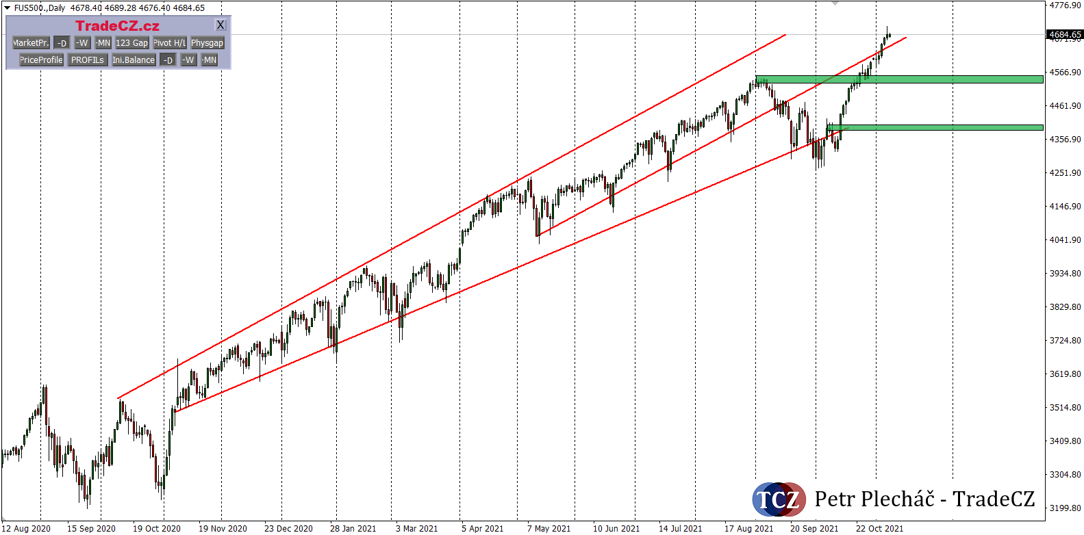 Akciový index SP500 vytvořil na W1 timeframe nové historické cenové maximum, k čemuž mu dopomohly především skvělé Earnings výsledky velkých amerických společností, a zároveň dobrá data z vlákna covidu-19.