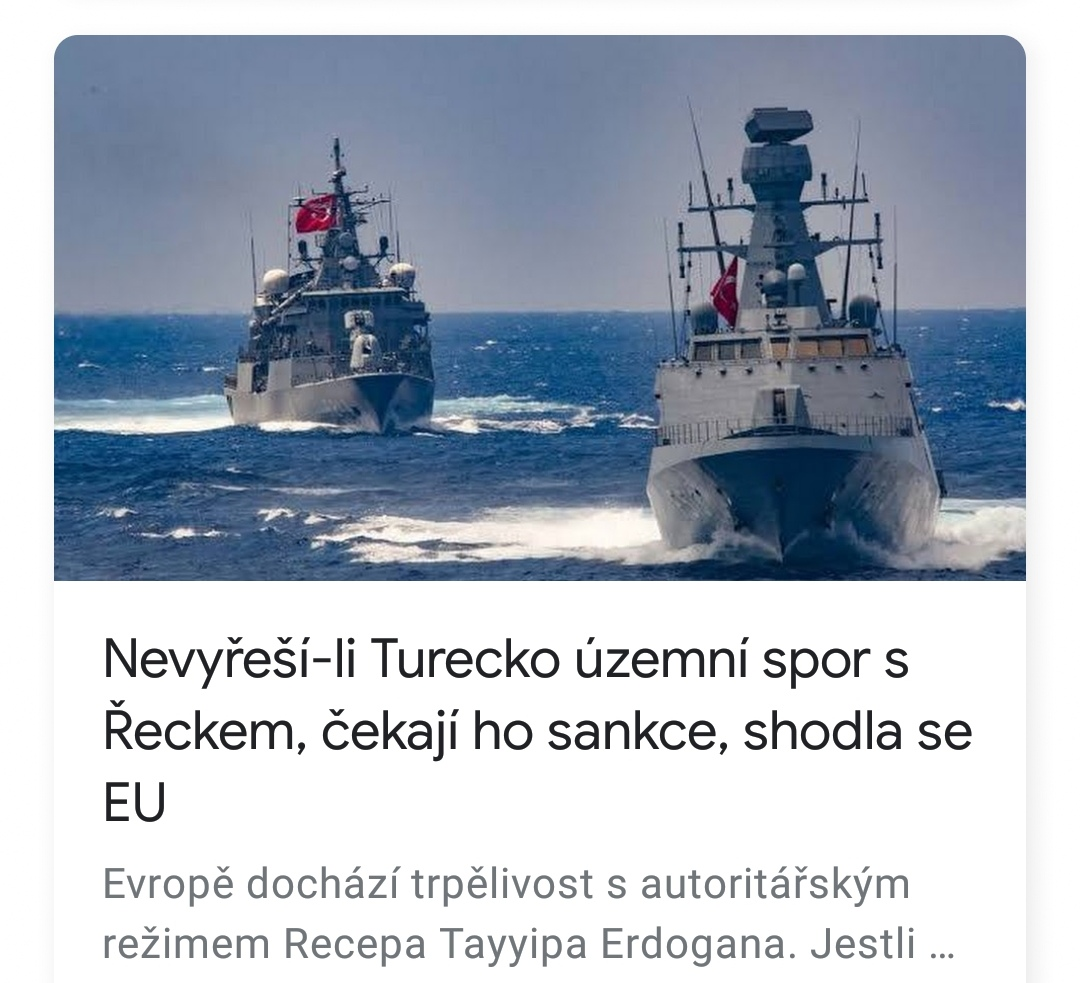 Spor mezi Řeckem a Tureckem se vyostřuje a údajně jen malá jiskra může zažehnout něco velmi nepěkného. Copak s tím udělá EU, Merkelová, která má z Erdogana respekt? Sankce…