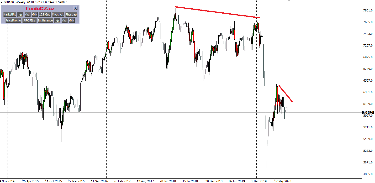 Při pohledu na akciové indexy jako SP500 nebo NASDAQ, kde dochází k tvorbám nových ATH, by nás ani nenapadlo, že na ostatních akciových indexech může být situace jiná. Příkladem je britský FTSE 100, který vytváří nižší tržní low, zatímco zbytek světa slaví a technologické akcie lámou rekordy.