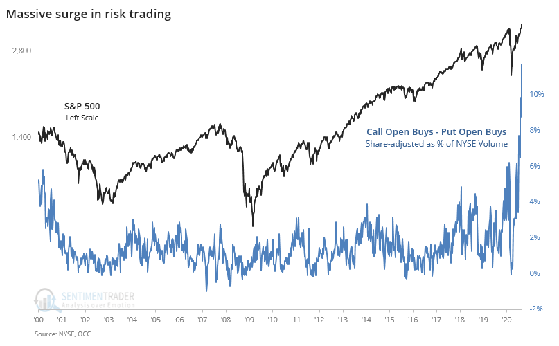 Co v této době dělají opční obchodníci? Nakupují bezhlavě call opce a spekulují na další růst akciového trhu.