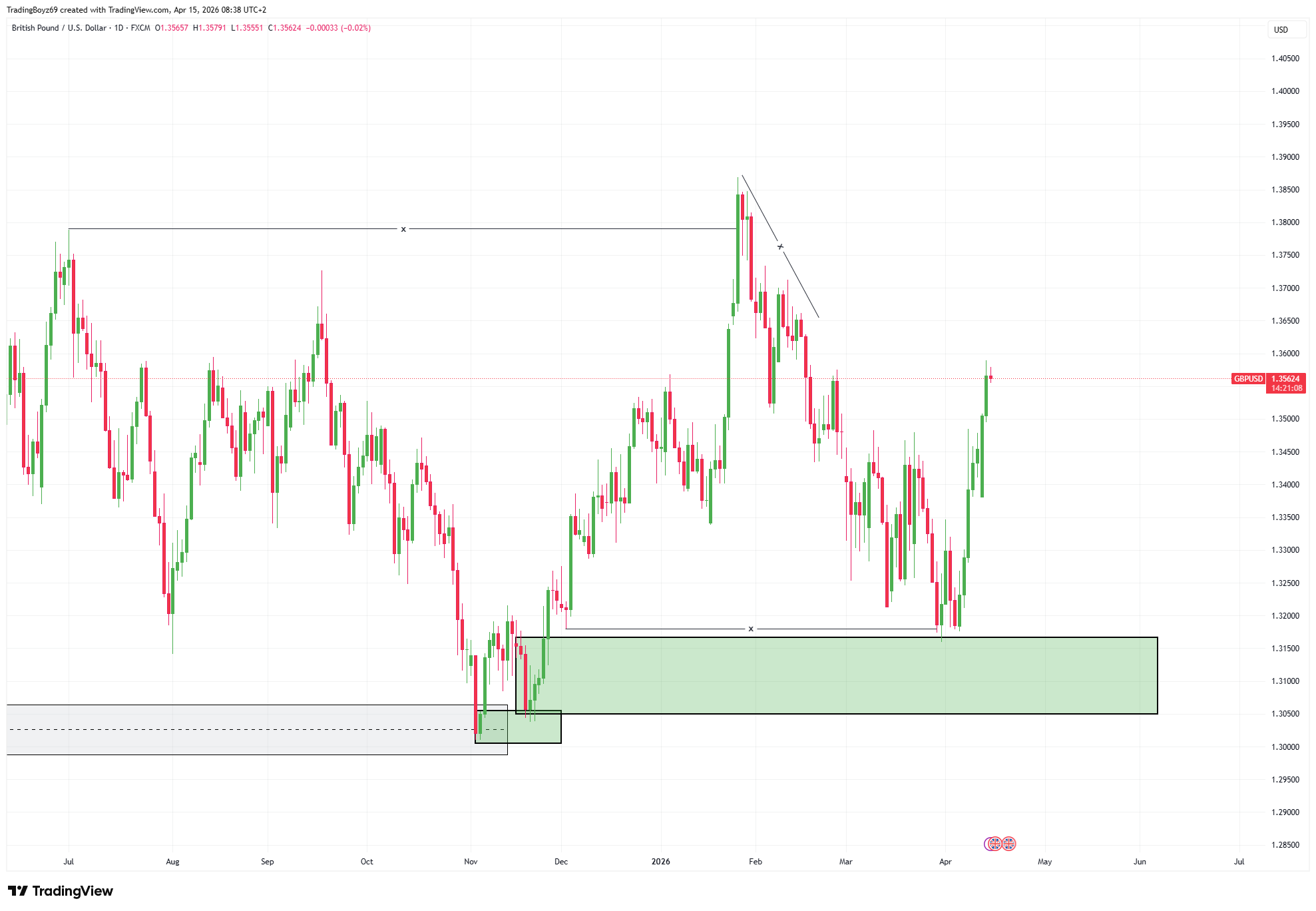 Na měnovém páru GBP/USD vidíme opět klasickou výběr likvidity – low fungovalo jako inducement, po kterém následovala reakce z demand zóny. Libra začala oslabovat v momentě eskalace situace na Blízkém východě. Nicméně v posledních dnech americký dolar začíná oslabovat, což vytváří prostor pro růst tohoto páru. Z fundamentálního pohledu je důležité, že Bank of England zatím neindikuje razantní snižování sazeb, což libru relativně podporuje.
