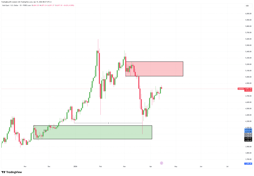 Nicméně celkově vnímám na zlatě silnou poptávku, takže z fundamentálního hlediska zůstává bias spíše bullish. Z technického pohledu vidíme klasický výběr likvidity, následně vytvoření range a demand zóny, ze které přišlo silné odmítnutí a impulsní růst. Jako další významnou oblast vnímám supply zónu okolo hranice 5200, kde může dojít ke zpomalení nebo reakci trhu.
