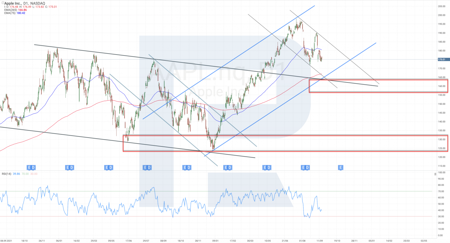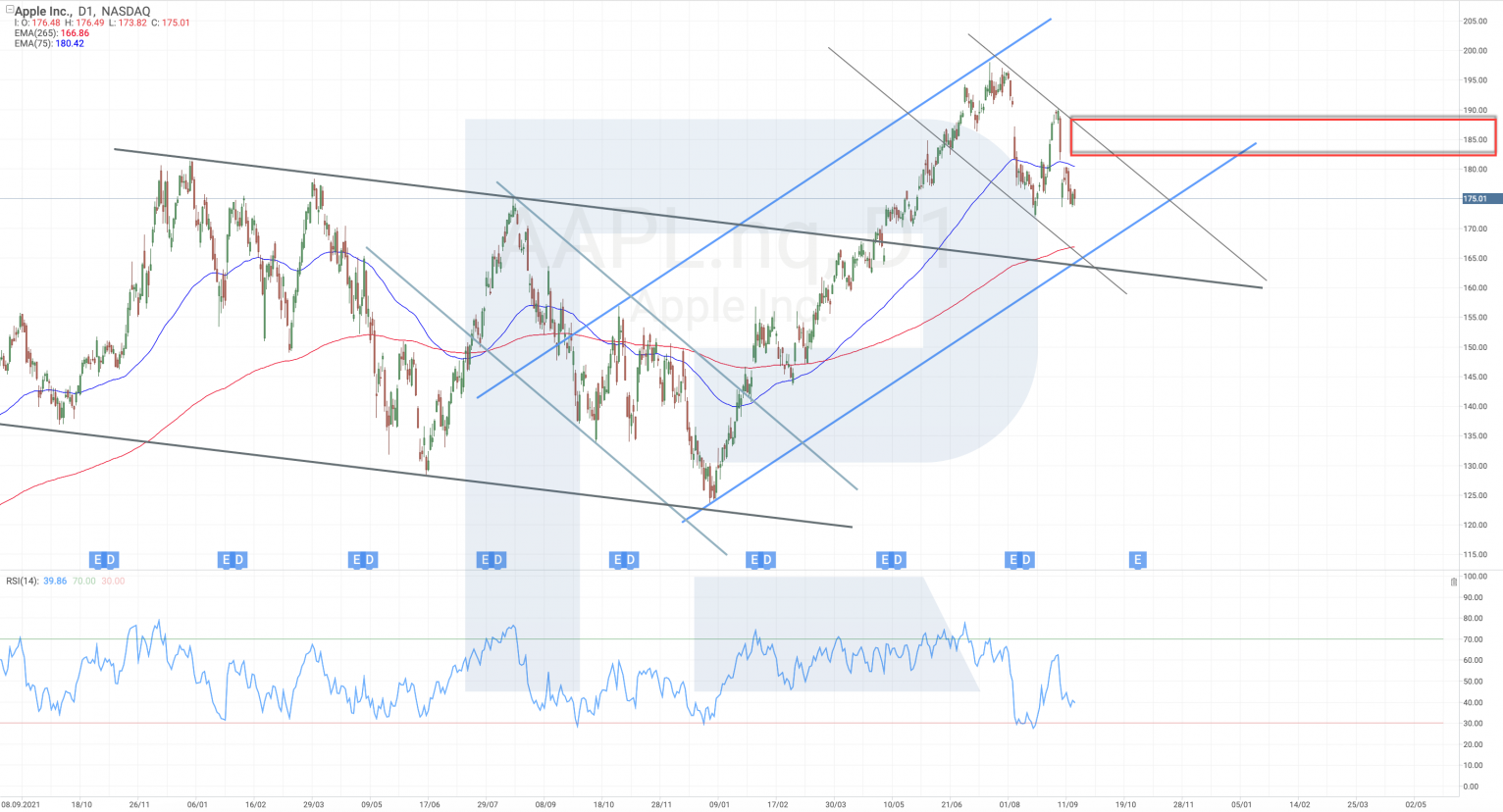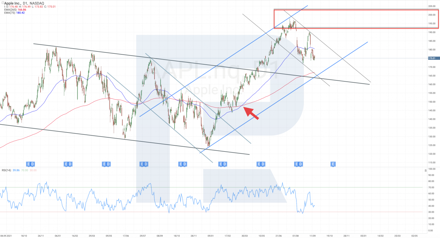 Exponenciální klouzavé průměry s periodami 75 a 265 konvergovaly 24. března 2023 ve prospěch vzestupného trendu. 19. září 2023 ceny akcií testují oblast mezi těmito liniemi. Z hlediska technické analýzy tyto úrovně představují potenciální oblast pro odraz ceny akcií, což by signalizovalo pokračování býčího trendu. Nejbližší cíl růstu spadá do rozmezí 195 až 200 USD.