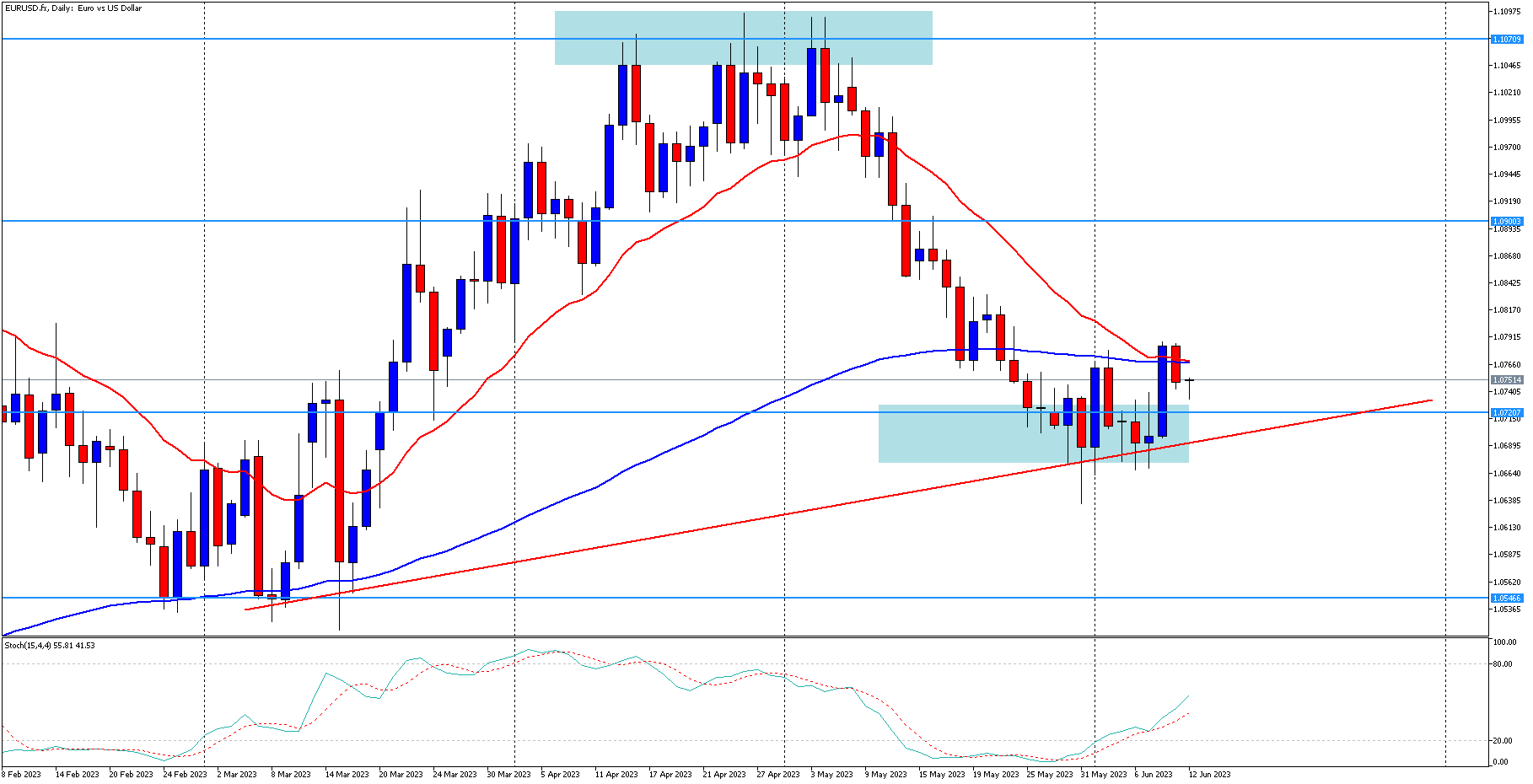 Americký dolar čelí tlaku, protože sílí spekulace, že Federální rezervní systém během nadcházejícího zasedání FOMC 13. a 14. června zastaví svůj cyklus zpřísňování měnové politiky. Holubičí nálady podpořily za týden vyšší než očekávané počáteční žádosti o podporu v nezaměstnanosti končící 2. června. Pravděpodobnost, že centrální banka po deseti po sobě jdoucích zvýšeních sazeb udrží rozpětí fed funds na úrovni 5,00-5,25 %, nyní se pohybuje kolem 72,5 %. Dolar ustoupil spolu s klesajícími americkými výnosy, přičemž sazba desetiletých dluhopisů klesla o téměř devět bazických bodů na 3,718 %.