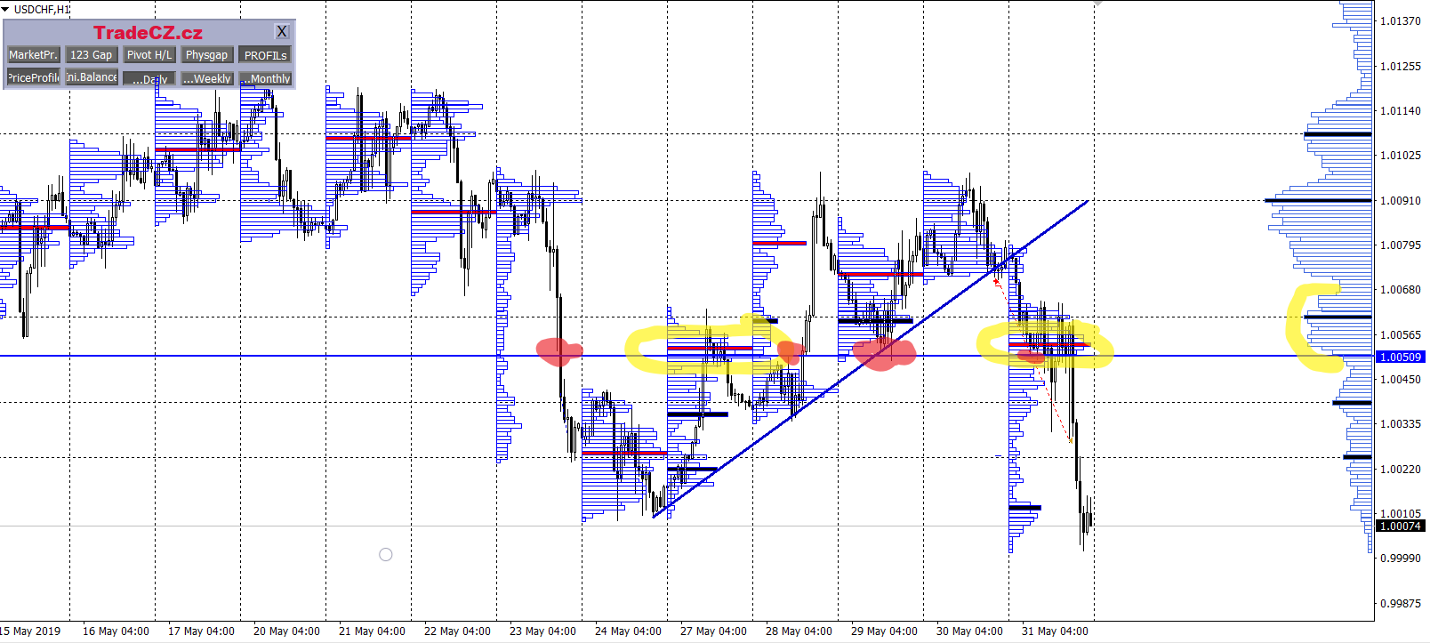 Jedním z mnoha levelů, který budeme v rámci PWFT klubu sledovat, je short level USDCHF na ceně 1.00509. Level je umístěn před první kumulaci profilu, patrné jsou dvě POC oblasti nad levelem a několik reakcí trhu na danou cenovou oblast.