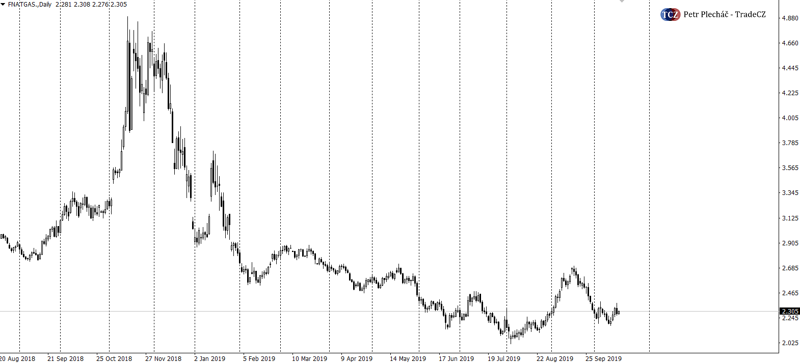 Poptávka po zemním plynu zůstává neutrální a zásoby se zvětšují. Investoři čekají na zprávy o počasí a zimě jak v USA, tak v Asii.