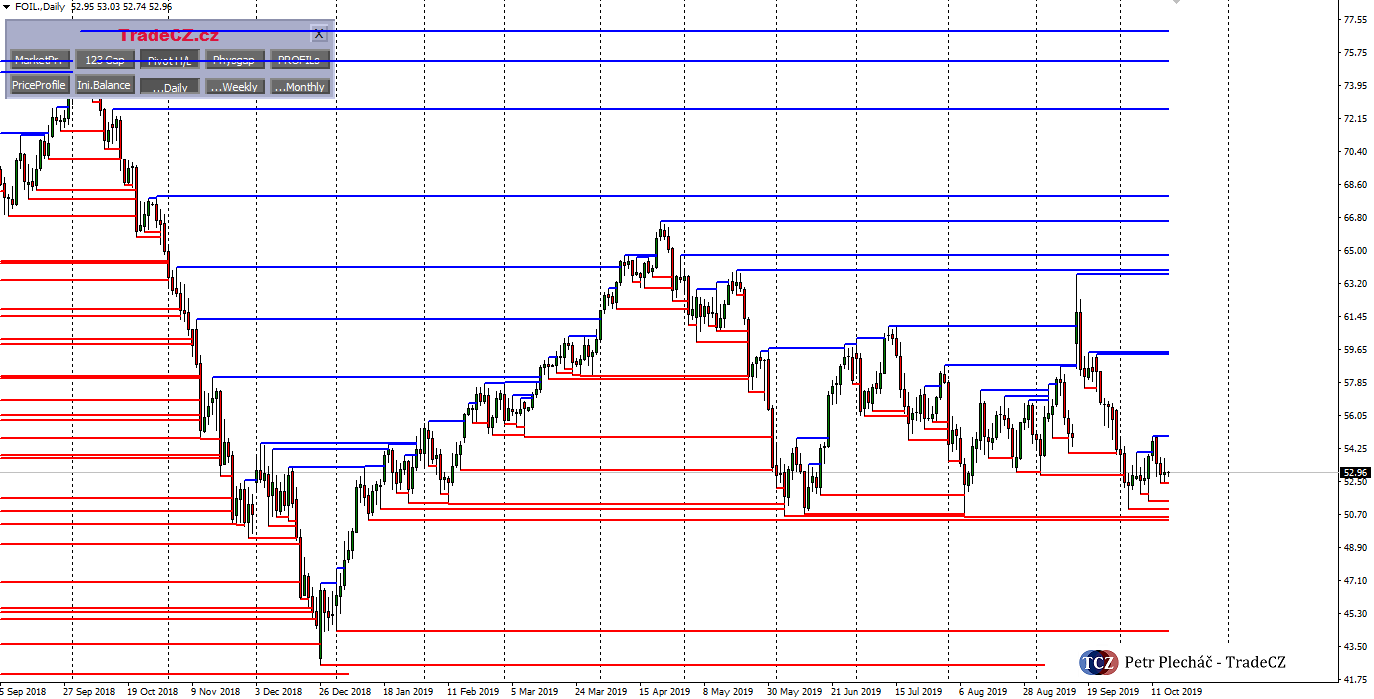 Ropa WTI se pohybuje okolo 53 dolarů za barel na aktuálním mikro supportu. Dlouhodobou podporu zde vytváří support na ceně kolem 51 dolarů za barel.