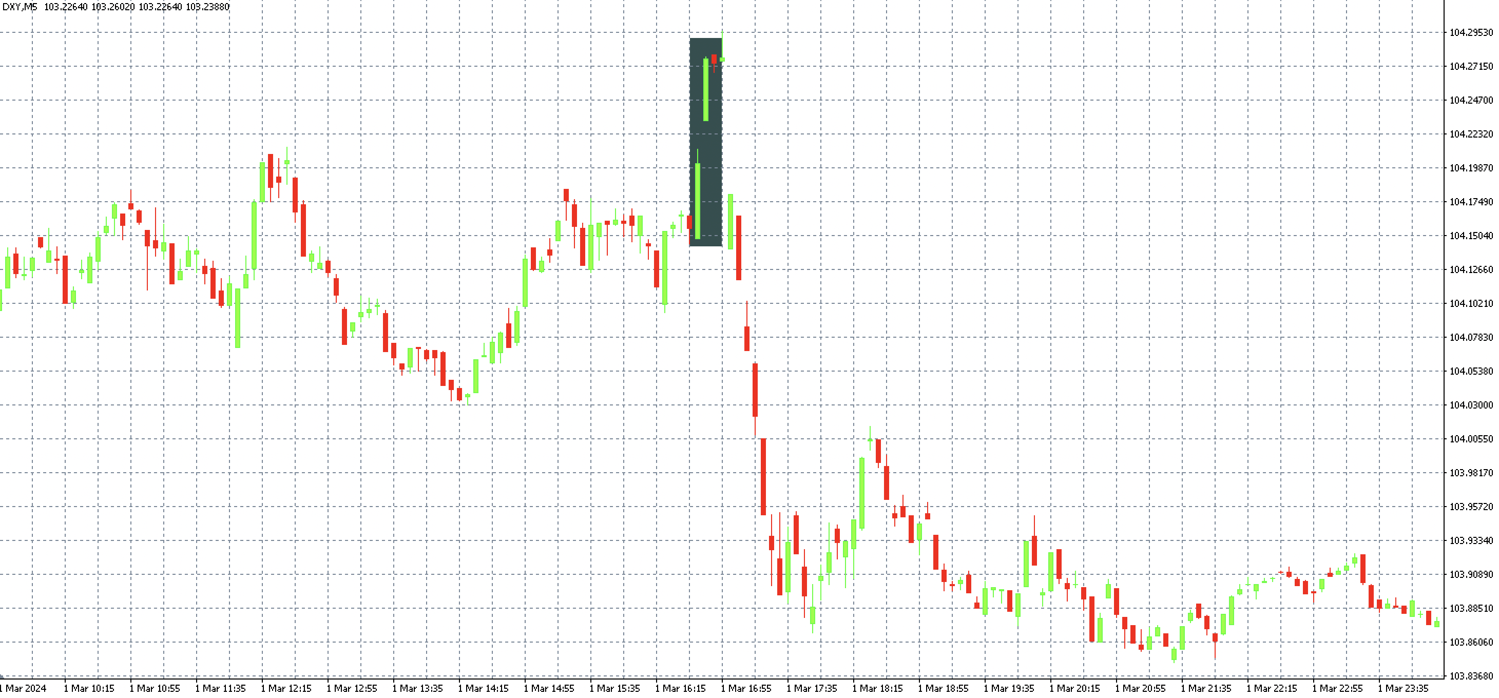 Pokud byste se v pátek 1. března podívali na ekonomický kalendář, patrně by vás žádná nadcházející událost v něm nevedla k myšlence na shortování zlata. Zlato totiž poslední dobou pokořuje jedno ATH za druhým. Marián však sleduje fundamenty za rámec letmého nahlédnutí do ekonomického kalendáře a věděl, že ten den 1. 3. od 16:15 vystoupí s projevem člen Fedu, Christopher Waller.