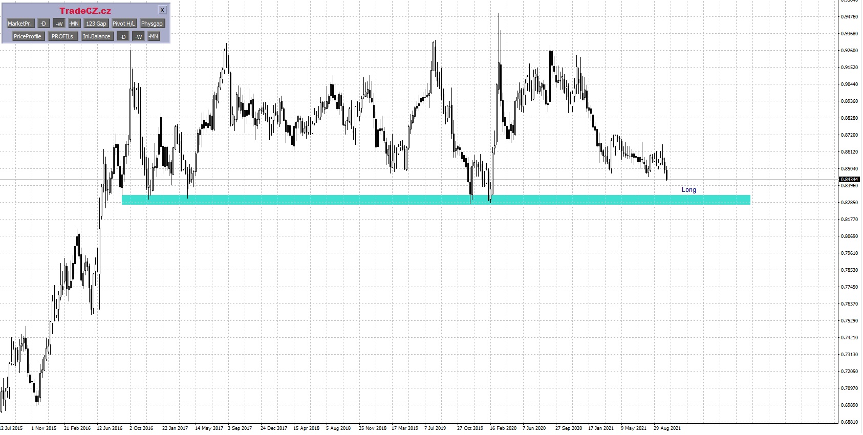V tomto případě by se jednalo o cenovou úroveň okolo 0.87200, kde by mohla být vybrána část zisku a zbytek obchodní pozice by bylo vhodné vybrat v cenové oblasti 0.89360 – 0.92600 v návaznosti na fundament a Price Action trhu.