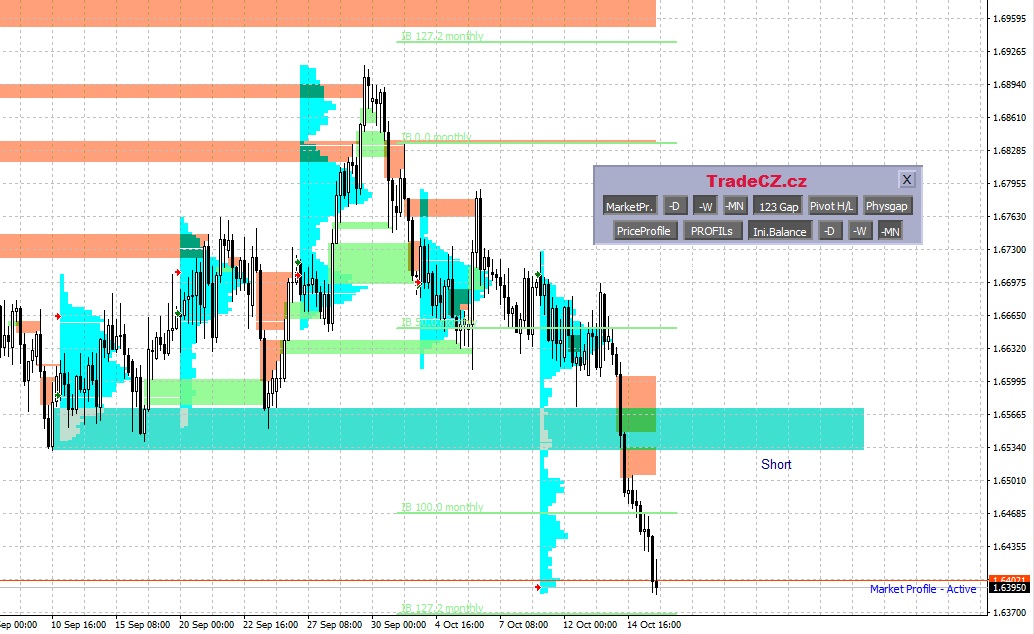 Měnové páry jsou analyzovány pomocí metody Market Profile, která umožňuje v trhu vyhledávat cenové oblasti s největším zájmem obchodníků.