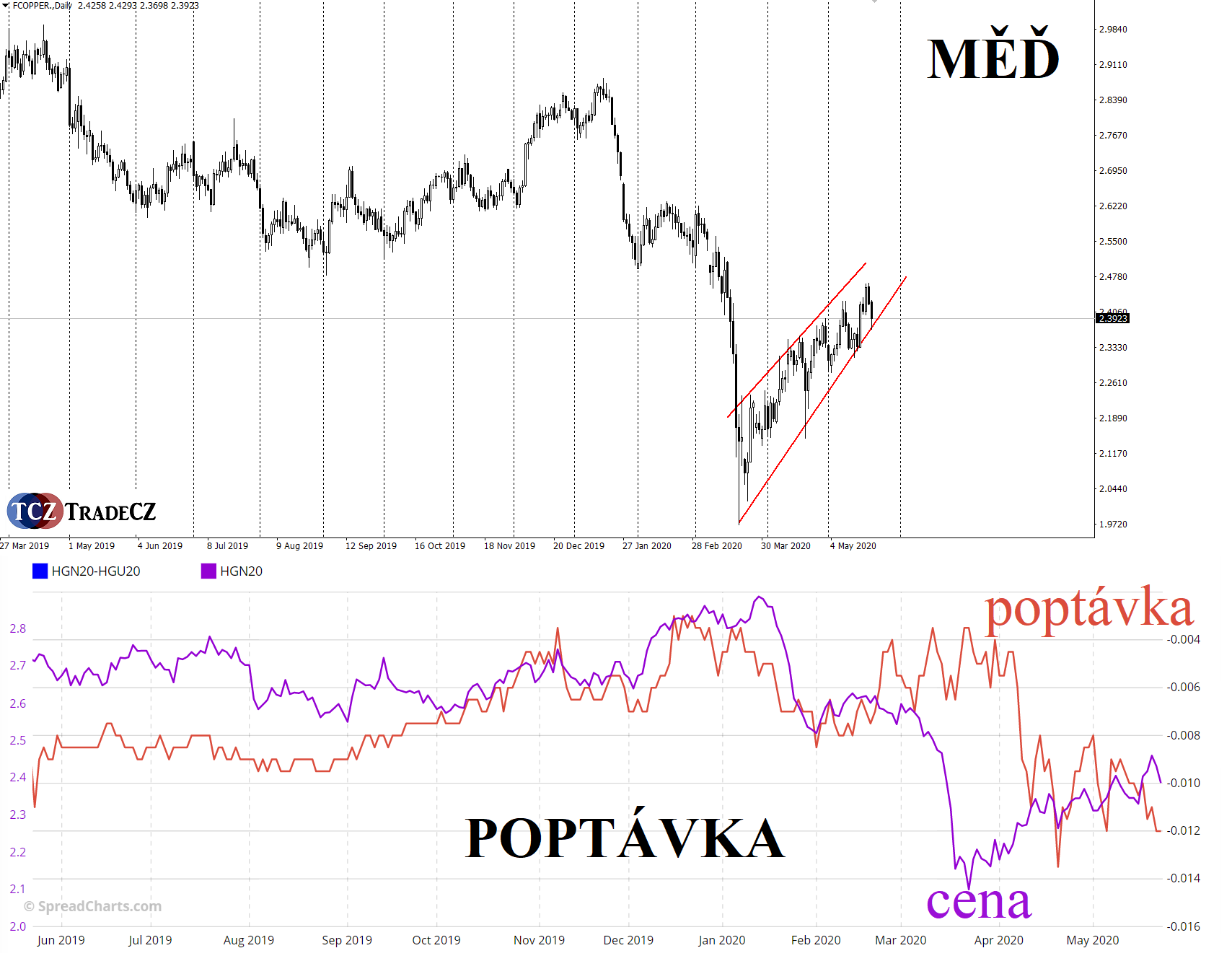 V dalším týdnu budu pečlivě sledovat měď, která se nachází na supportu rostoucí trendline, ale poptávka po mědi značí jistou slabost.