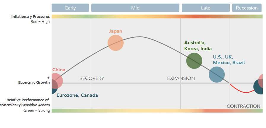 Americká ekonomika vykazuje smíšené signály – vedle pozitivních dat ze střední fáze cyklu se objevují i náznaky zpomalování. Naopak Čína, Evropa a Kanada ukazují známky oživení po období slabší aktivity. Další ekonomický růst v těchto regionech však bude pravděpodobně záviset na stabilnějším a předvídatelnějším politickém prostředí Fidelity.