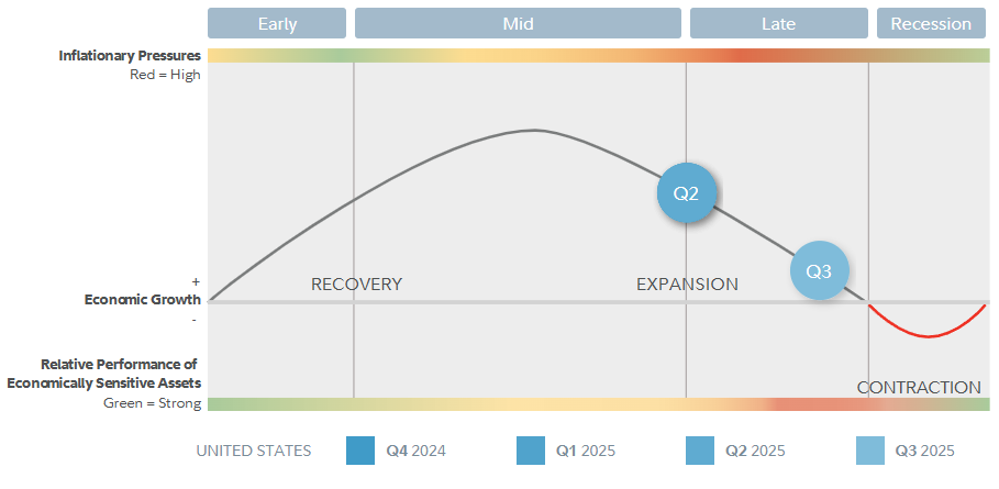 Americká ekonomika nadále expanduje, přičemž Q2 přinesl známky střední fáze cyklu – kombinaci silného trhu práce a mírného ochlazování aktivity.