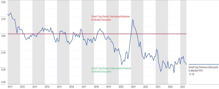 Akcie malých společností se i nadále obchodují s výraznou slevou | Morningstar Research Services, LLC. Data as June 30, 2025
