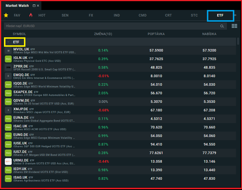 U ETF, podobně jako u jednotlivých akcií, je potřeba při jeho nákupu opět nezaměnit s CFD. XTB nabízí stovky ETF, která lze nakoupit a diverzifikovat tak své agresivní portfolio. ETF, která kopírují index 500, je mnoho, tudíž je potřeba zvolit to nejvhodnější, například z hlediska poplatků či typu distribuce.