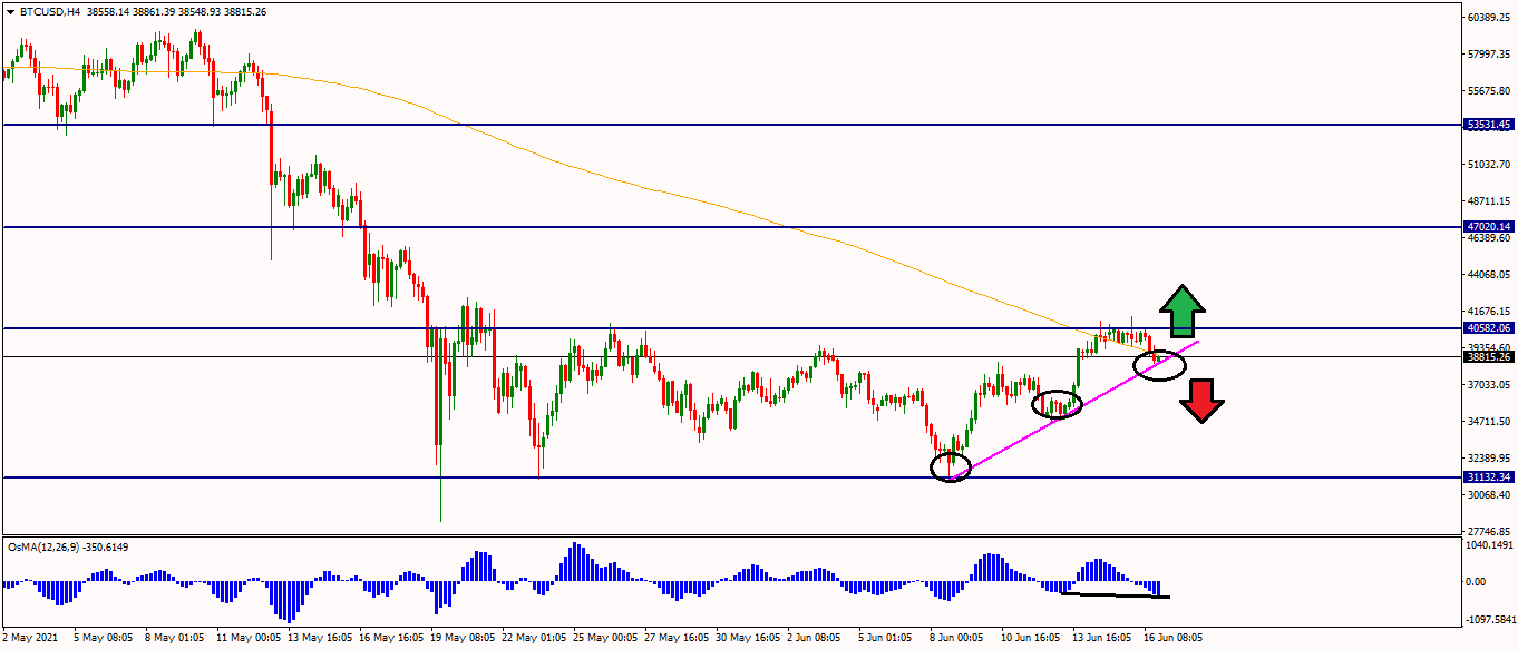 Bitcoin padol z ceny $65k až na $28k len behom pár týždňov. Odvtedy je v podstate v stranovke bez významného pohybu. Drží sa v pásme medzi $31k a $41k. BTC sa úspešne odrazil od rezistencie ale dôjde až na support dole? Ešte je v ceste trendová línia, od ktorej sa môže trh odraziť hore a preraziť rezistenciu aj pomocou vznikajúcej divergencii. Ak by sa podarilo trhu breaknúť toto pásmo nahor, mal by ísť aspoň na $47k. Je to prvýkrát odkedy sa trh dostal nad kĺzavý priemer (SMA200), čo je dobrý buy signál. Aby sme si boli ale istí, musí trh prekonať ešte level 40 582.