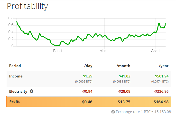 Pokud se podíváme na Antminer za cca 800 USD dostupný většině lidí, pozorujeme nynější ziskovost těžby. Právě v tento moment by stroj dokázal ročně vytěžit 500 USD. Odečteme-li výdaje za elektřinu, dostaneme se na čistý zisk 164 USD / rok. To určitě není na první pohled příliš zajímavé, zřejmě ani na druhý, ale co trochu jiný pohled?