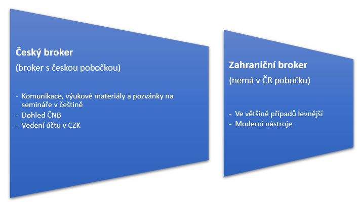 - Komunikace, servis, osobní schůzky (pro velkého brokera je klient číslo, menší broker se chová lidsky)