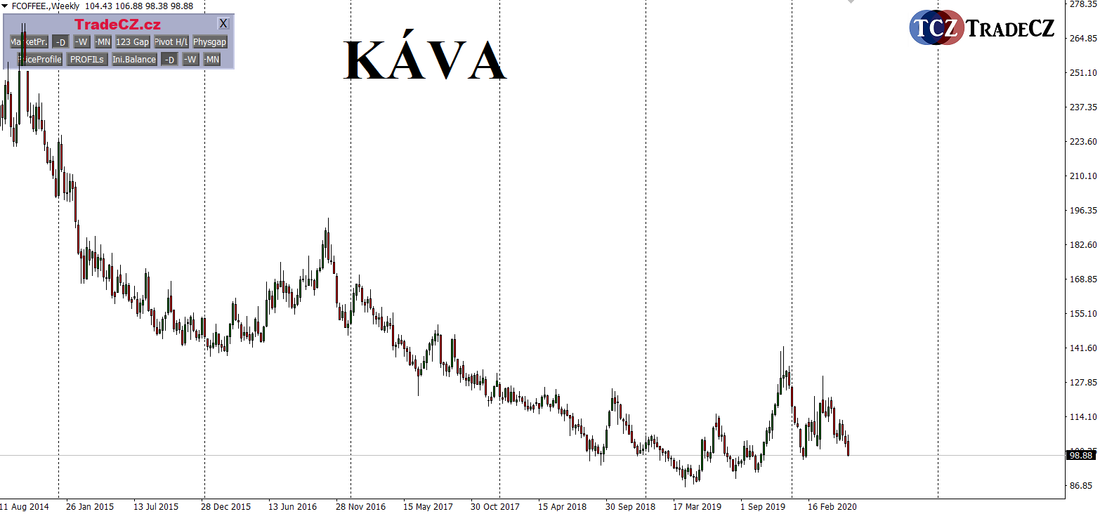 Káva se znovu dostává do hledáčku komoditních obchodníků. Aktuálně se obchoduje pod psychologickou hranicí 100 centů za libru a my v týmu už víme, na co se vyplatí počkat 🙂
