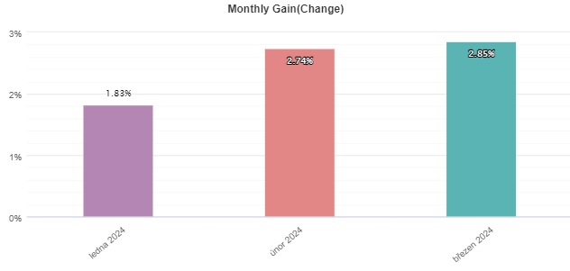 V letošním roce jsou zhodnocení účtu velmi konzervativní, nicméně stabilita je určitě na prvním místě. Jak se letos každým měsícem přesvědčujeme, zisky se tvoří především kvalitou jednotlivých obchodů, nikoliv jejich kvantitou.