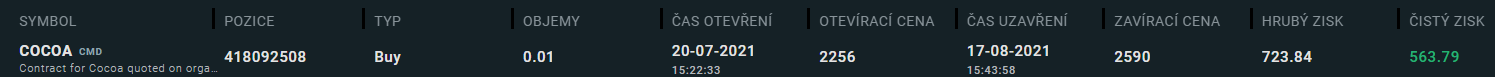 V tomto článku bych se rád podíval na svůj poslední obchod na kakau, který jsem realizoval u brokera XTB na svém reálném účtu. Zavřel jsem zisk 500 Kč, nebo 5 000 Kč? A je to vůbec podstatné? 🙂 Na závěr analýzy si k tomu něco málo řekneme.