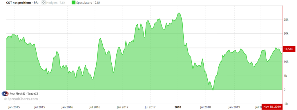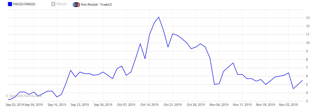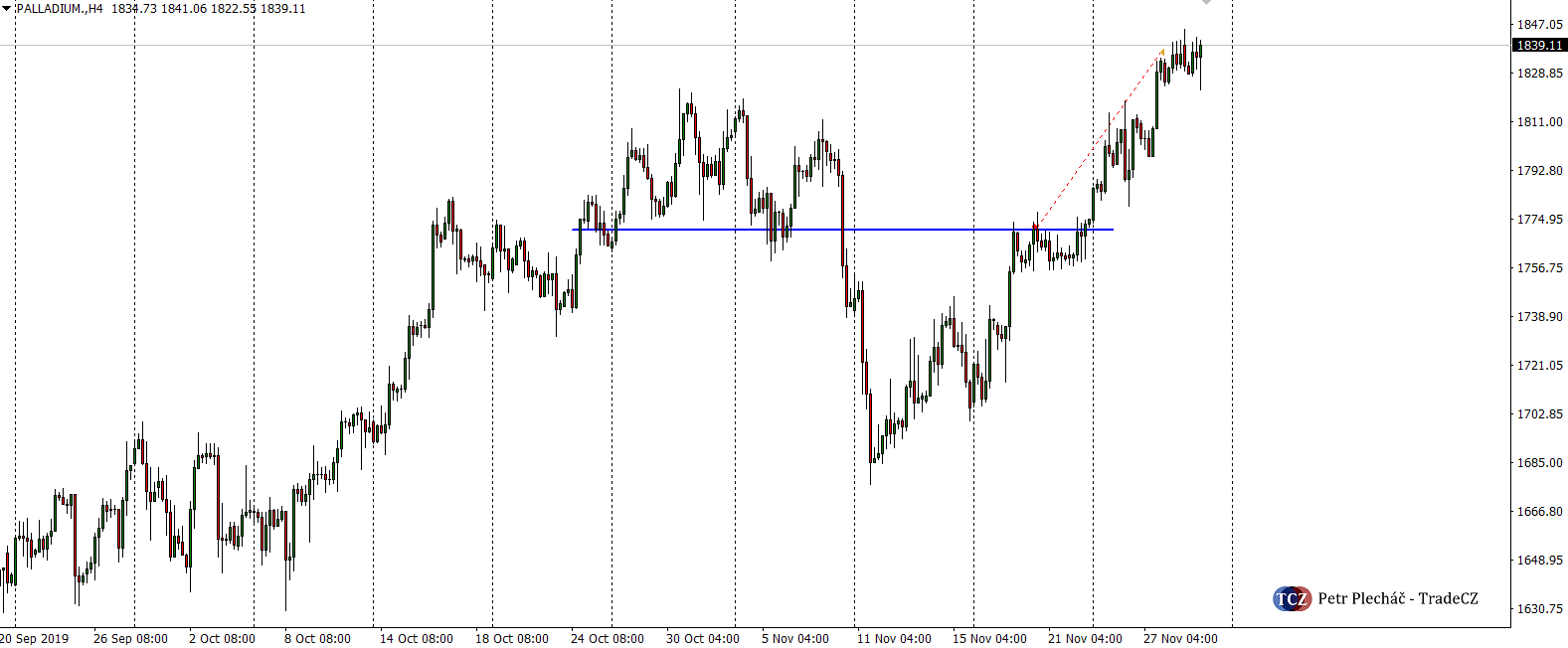 V textu výše jsem se zmínil, že poslední zisk jsem bral na palladiu a shodou okolností je to také má poslední uštědřená ztráta. Palladium je komodita v silném uptrendu a každý short je ohromně riskantní.